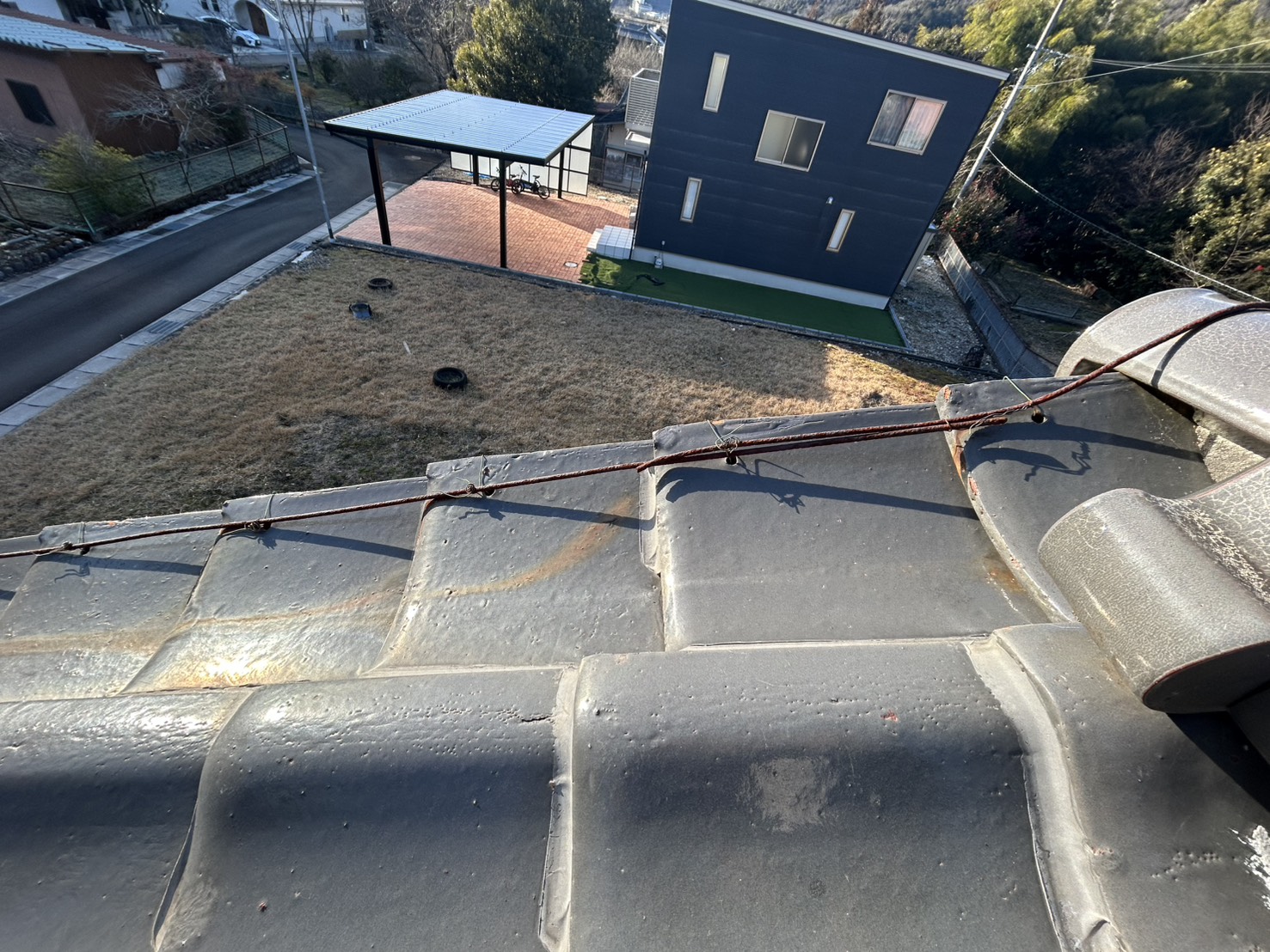 日本瓦をつないでいる番線は、錆びたままにしておくと強風などで千切れてしまい、端の瓦が落下する危険があります。